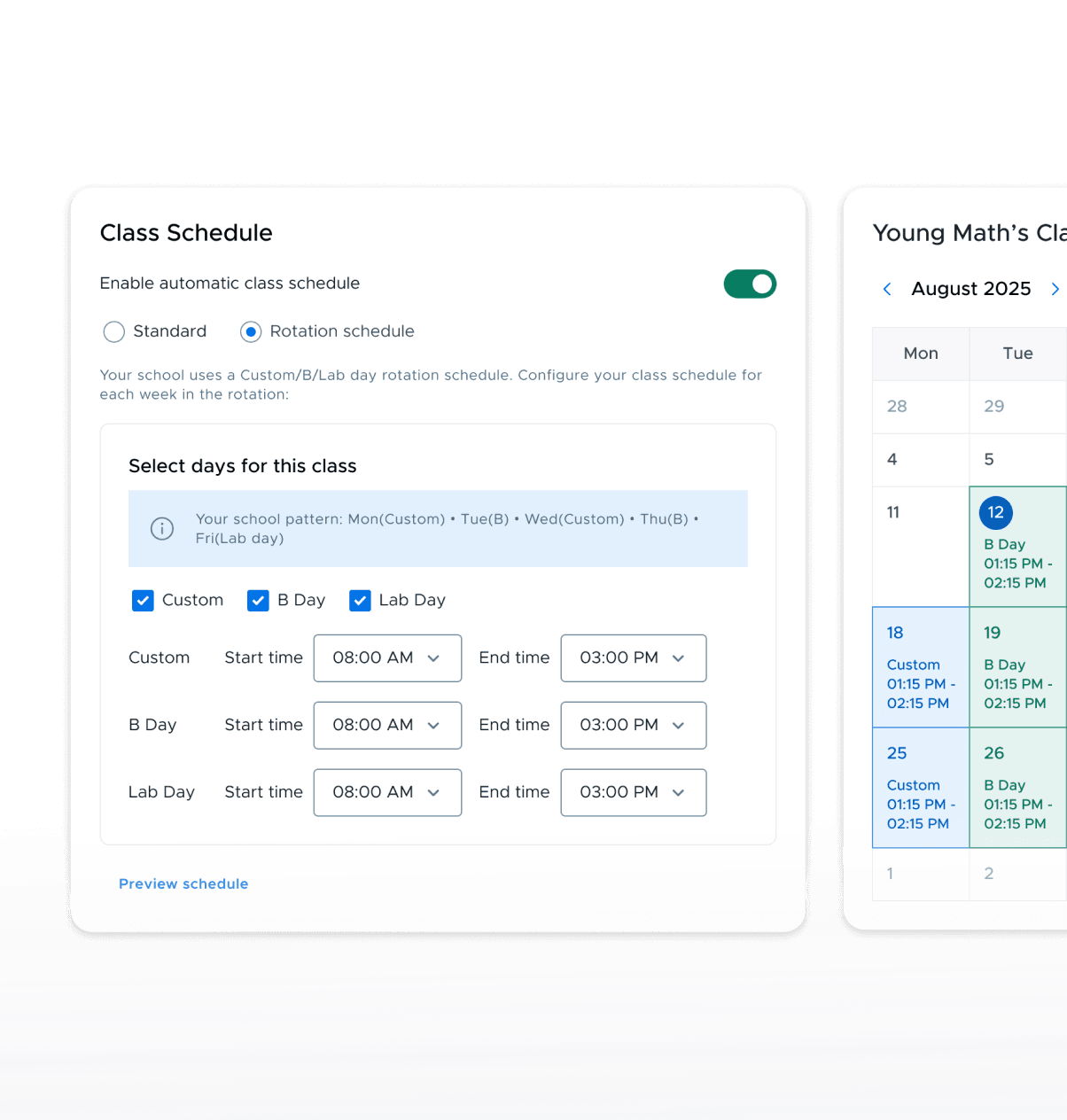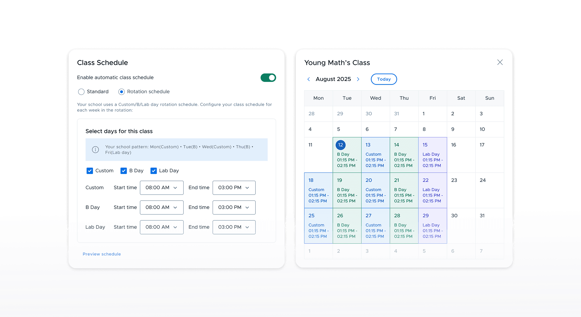 Designing a Flexible Schedule configuration to adapt all schedule type used by Districts and schools focused on making automatic class scheduling fast and efficient to use.